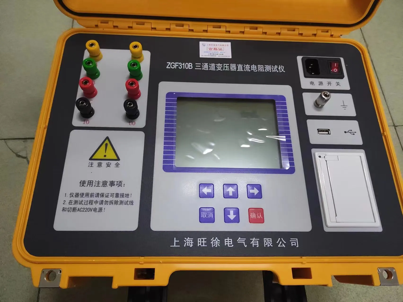 变压器的直流电阻是变压器制造中半成品、成品出厂试验、安装、交接试验及电力部门预防性试验的必测项目,能有效发现变压器线圈的选材、焊接、连接部位松动、缺股、断线等制造缺陷和运行后存在的隐患。为了满足变压器直流电阻快速测量的需要,我公司利用自身技术优势研制了ZGF310B三通道变压器直流电阻测试仪。该仪器是集三相测试(Yn,Y,△)和消磁功能于一体的新一代快速测试仪,是测量大型电力变压器直流电阻的理想设备。屏幕采用大屏幕高分辨率液晶显示屏,方便现场使用,具有中文菜单提示功能,操作简便直观,一次接线完成所有直阻测试项目,测试速度快,准确度高,量程宽。