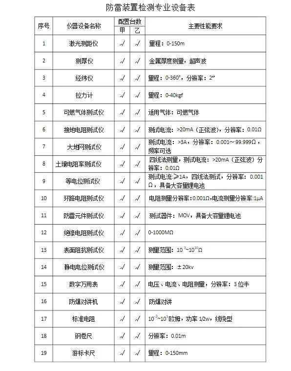 《雷电防护装置检测资质管理办法》中规定防雷装置检测资质等级分为甲、乙两级。